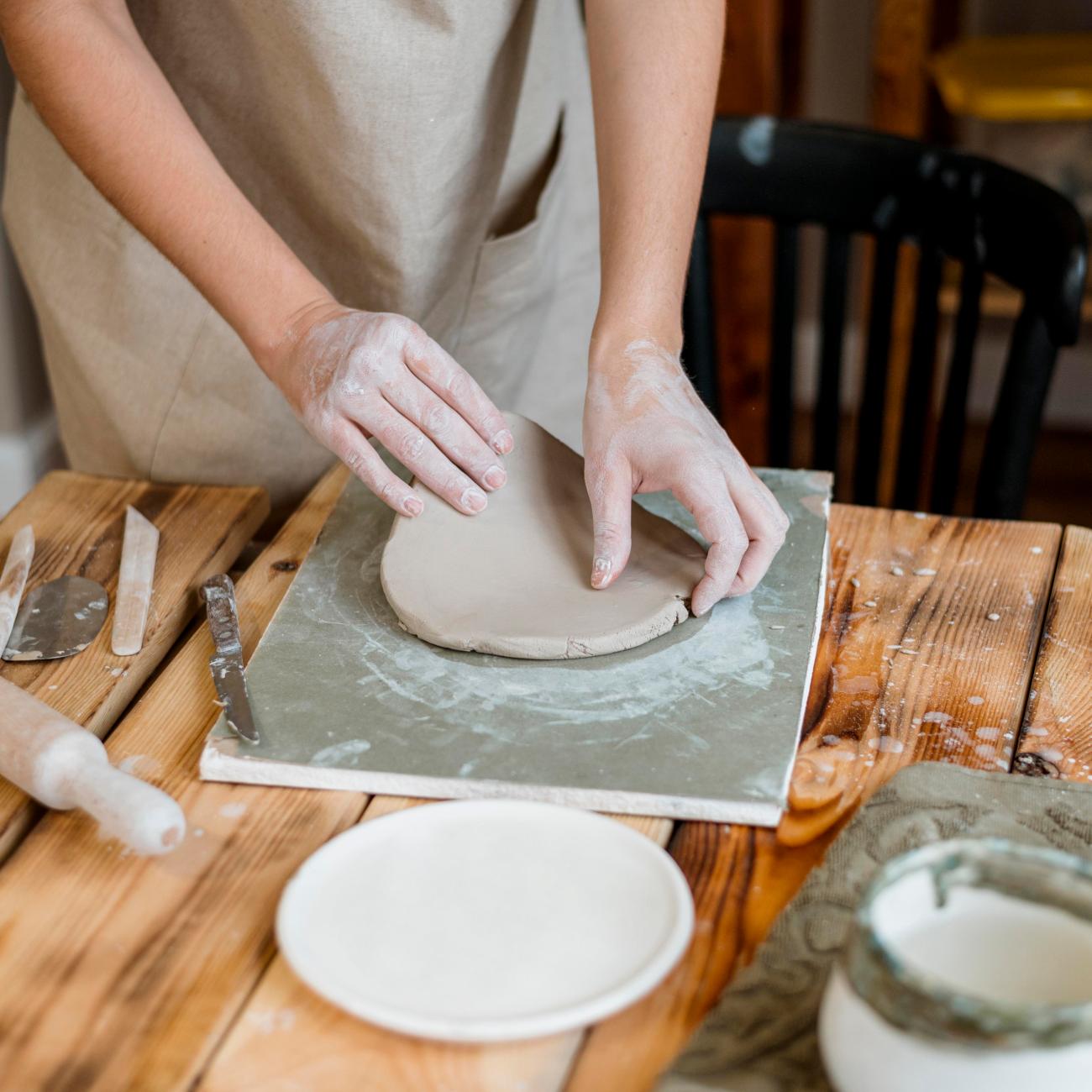 Session I: Designing & Shaping. Focus on the foundation of your pieces. Using slab-building, pinching, and rolling techniques, you will shape your selection, whether it’s plates (up to 25 cm), bowls, cups, or a cheese plate. You’ll experiment with textures and silhouettes to bring your vision to life.